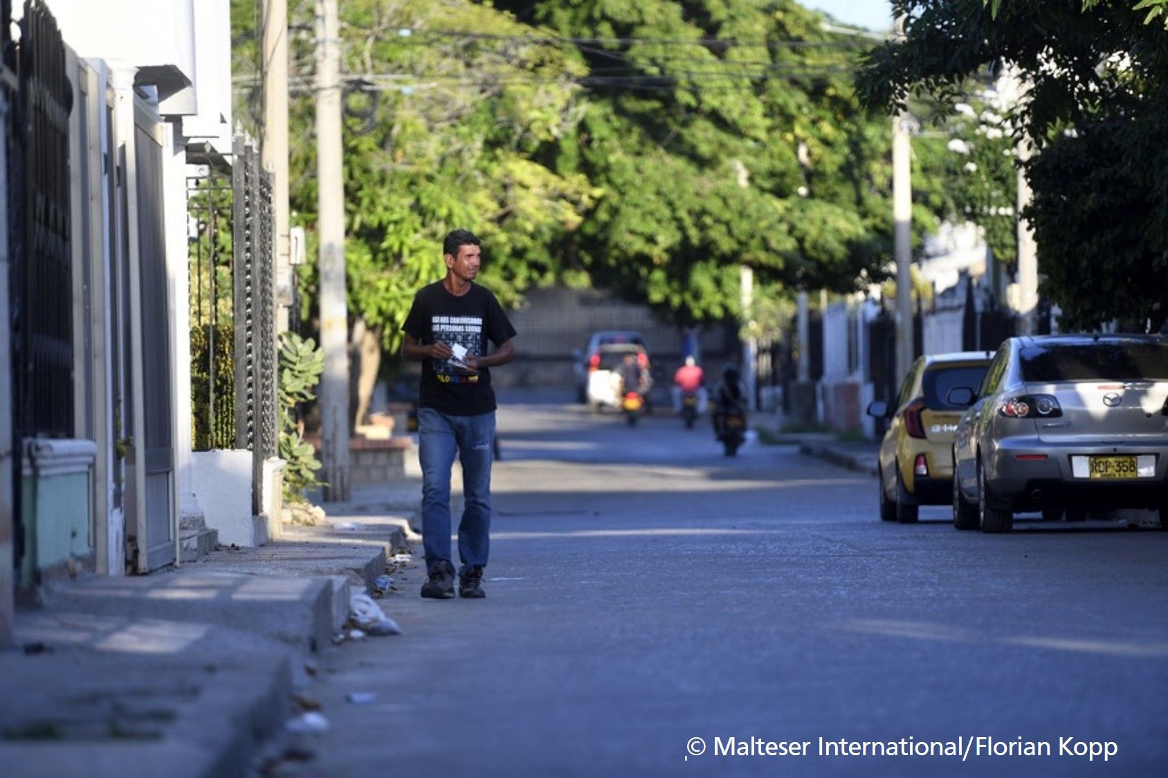 Auch Carlos Garcia, 42 Jahre alt, ist auf ärztliche Versorgung angewiesen. Der ehemalige Koch aus Maracaibo ist taub und leidet unter einer starken Entzündung im Bein. Seit er in Venezuela wegen Durchblutungsstörungen operiert wurde, schwoll sein Bein immer wieder an. Es wurde dick und entzündete sich ständig. Auf der Flucht nach Kolumbien legte Carlos lange Strecken zu Fuß zurück, was zu weiteren Entzündungen geführt hat. „Ich bin auf ständige ärztliche Behandlung und Medikamente angewiesen. Ohne Malteser International könnte ich vermutlich längst nicht mehr laufen“, sagt er. „In Venezuela gibt es nichts mehr, aber hier kann ich dank der Hilfe der Malteser überleben. So ein Leben auf der Flucht ist für alle schwer, aber besonders für uns Menschen mit Behinderungen. Viele wollen nichts von uns wissen oder machen sich lustig über uns. Die Mitarbeiter von Malteser International haben mich mit offenen Armen empfangen. Das werde ich nicht vergessen.“