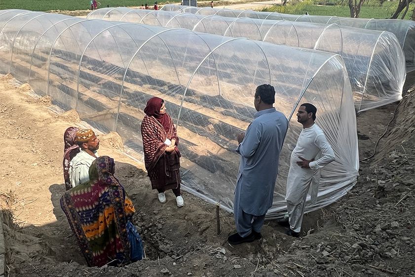 Im Dorf Ali Abad im Union Council Hindyari haben drei Bauern – Ghulam Zuhran, Shokat Ali und Karam Hussain – mit ihrem Mut zur Veränderung etwas Besonderes geschafft. Als Teil des Projektes von Malteser International begannen sie damit, in sogenannten vertikalen Tunnelanlagen wassersparend und unabhängig von der Saison Gemüse anzubauen.