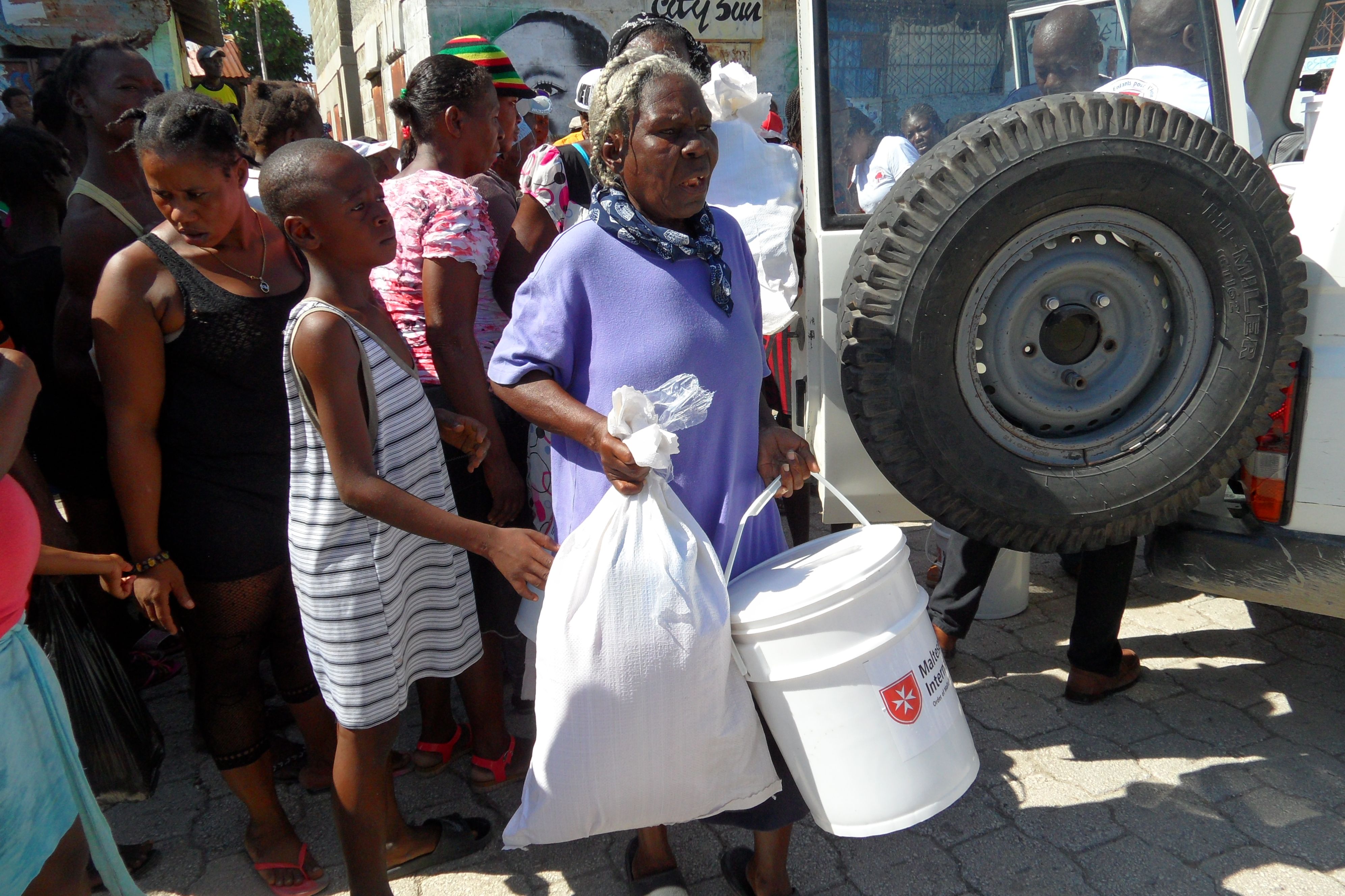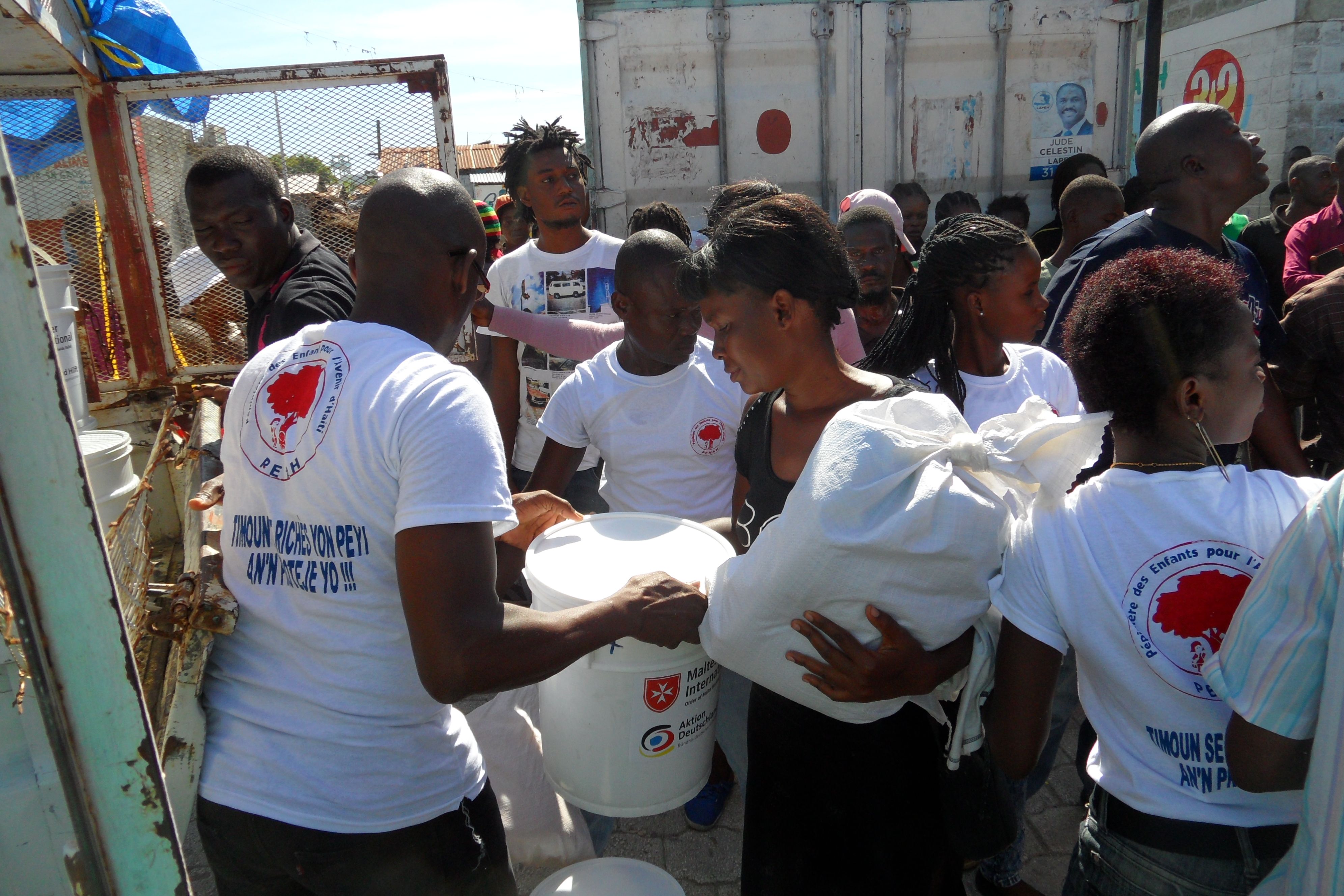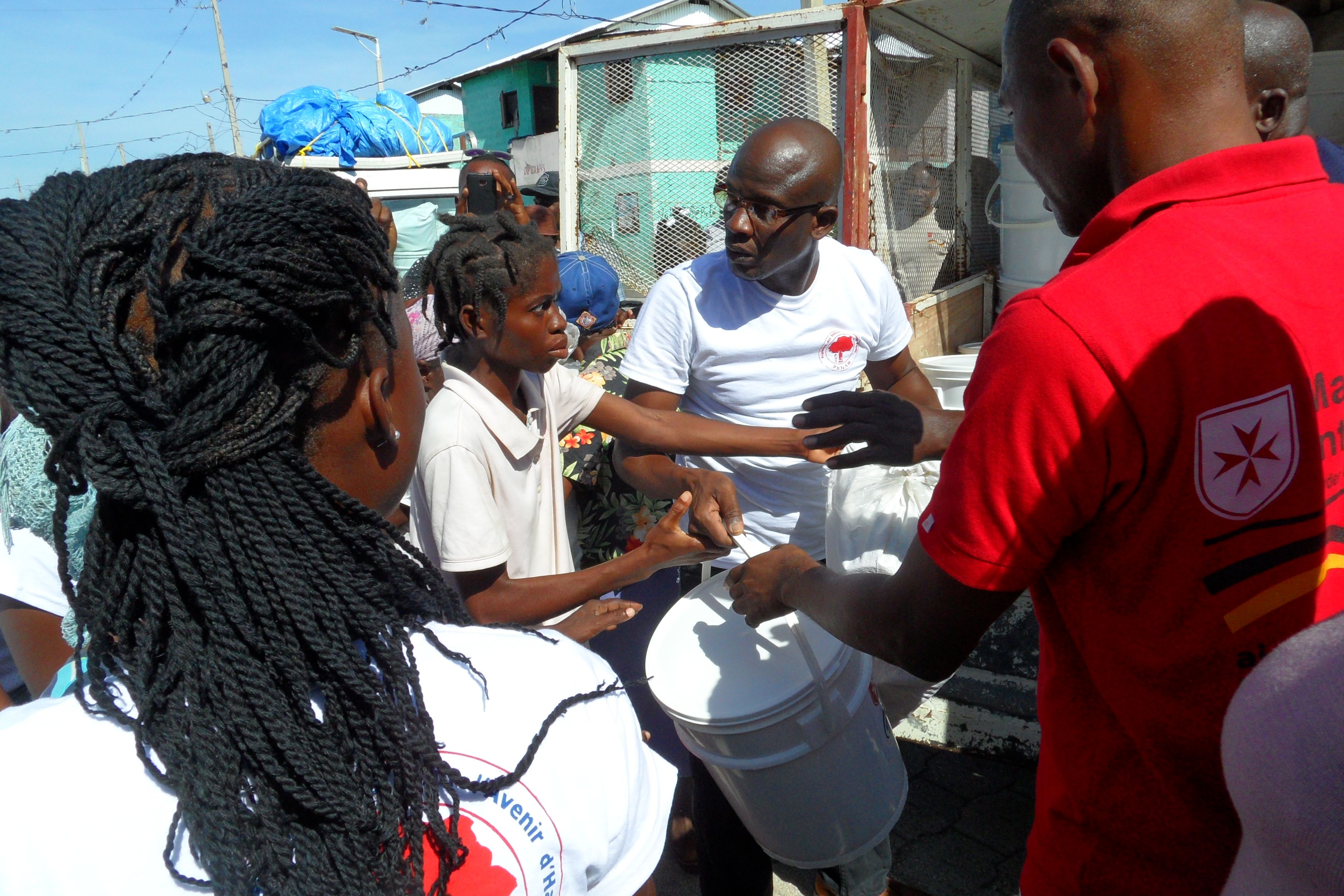 Malteser International’s aid efforts continue in stricken Haiti, three weeks on from Hurricane Matthew’s devastating landfall. The organization distributed tools and equipment, and helped to clear streets and drainage channels in some of the most heavily affected areas in the immediate aftermath of the hurricane. The floodwaters have mostly receded, but conditions in the country remain appalling, and the risk of a cholera epidemic is still high. Following a successful campaign to inform locals of ways to reduce the risk of cholera, Malteser International staff are now distributing hygiene kits including feminine hygiene material to around 1,200 families. A major campaign to clear canals blocked by debris from the hurricane – which create a breeding ground for mosquitos and disease – is scheduled to begin in the coming days and will involve almost 200 workers.