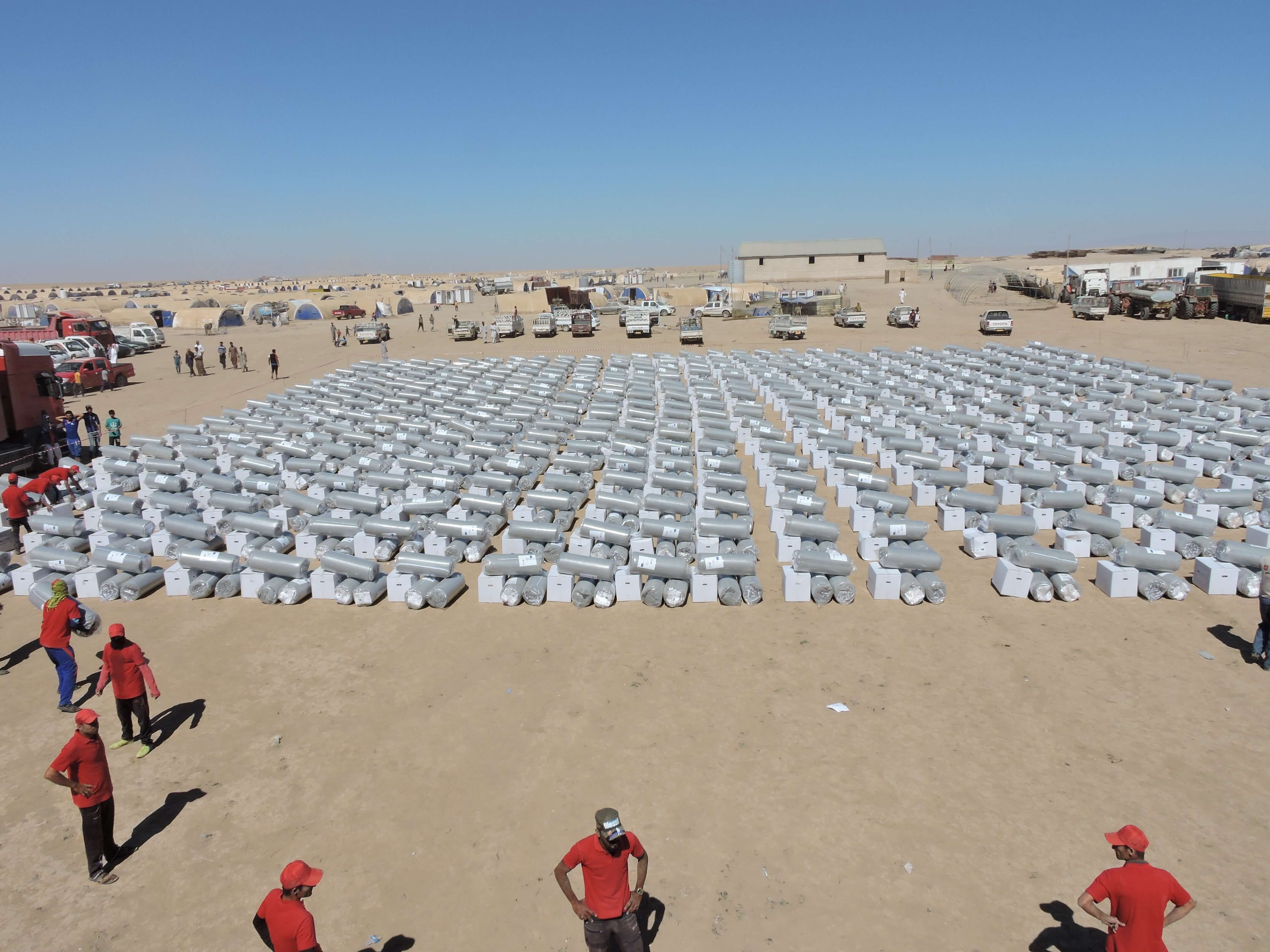 Distribution of emergency kits with blankets, mattresses, linens and cooling boxes. Photo: Malteser International