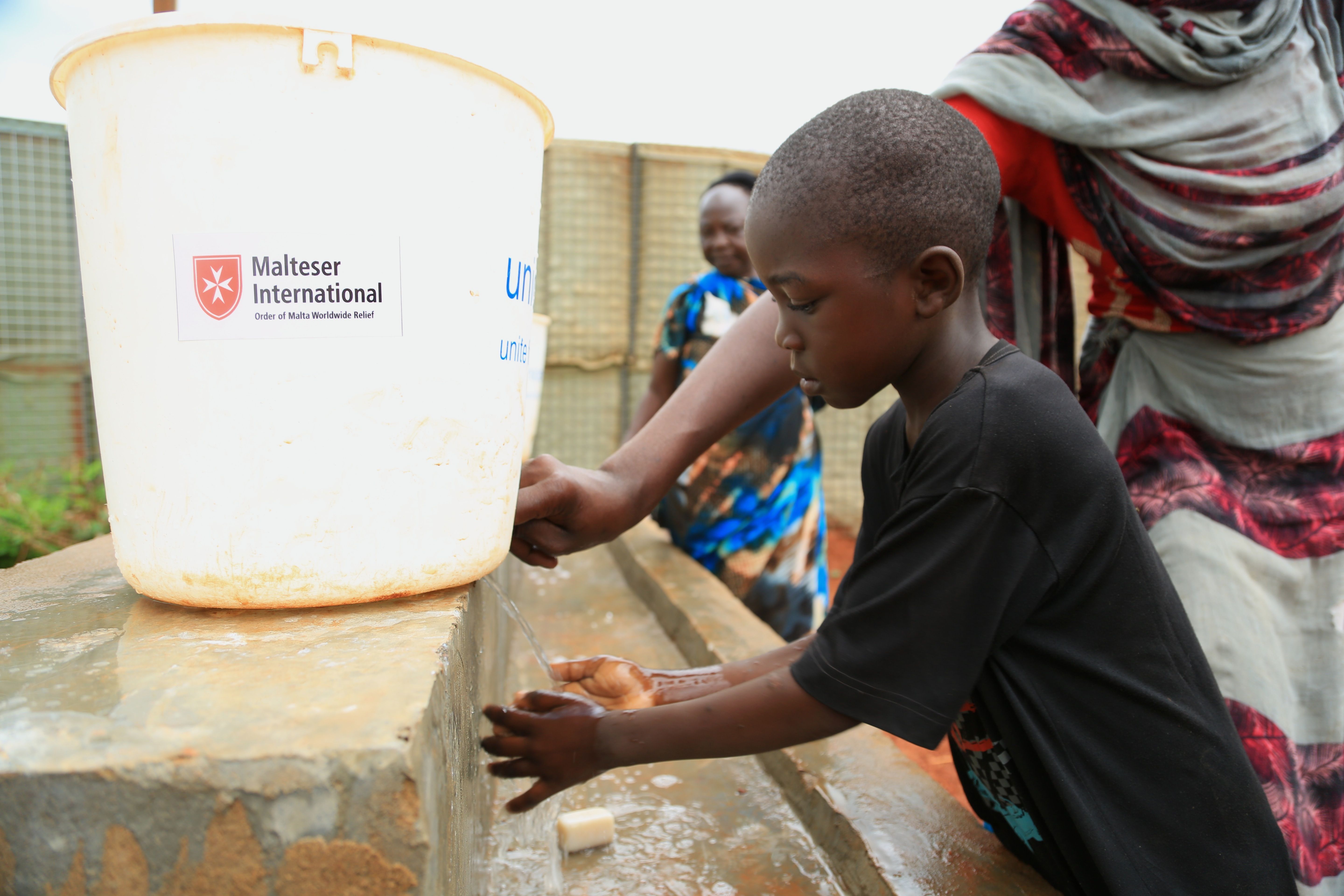 ''Je suis reconnaissante de pouvoir venir ici chaque jour et obtenir un repas. C’est aussi l’occasion pour moi de sortir du camp de réfugiés, où l’on étouffe. Il y a très peu de place et beaucoup de gens sont malades. Heureusement, nous apprenons aussi à nous protéger contre la maladie". Hawa Peter n'a que 8 ans, mais la petite fille est déjà consciente qu’une bonne hygiène a beaucoup d’impact sur sa santé. Les maladies se transmettent rapidement dans les camps de réfugiés.